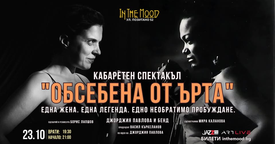 ✨ Една жена. Една легенда. Едно необратимо пробуждане. Тя търси Ърта Кит — митичната, многолика жена с глас, който не се забравя, с дух, който не се подчинява, с живот, който не се обяснява. Но колкото по-дълбоко навлиза в света на Ърта, толкова повече потъва в себе си. 🎼 Музика, думи, спомени и сенки... Смях и болка, светлини и мрак... Това не е просто спектакъл. Това е пътуване. Разследване. Откровение. ❓ Дали животът ѝ има смисъл? ❓ Ще намери ли отговорите? 💫 Или... ще се научи просто да живее истински? Не пропускайте това кабаретно преживяване — завихрящо, дръзко и дълбоко лично. Вдъхновено от Ърта Кит — но разказано като никога досега. 🖤 Финалната ѝ фраза може да бъде и вашата: „...ако не знаете накъде сте тръгнали, елате на себе си!“ 💡 По идея на: Джорджия Павлова 🎬 Режисура: Борис Лапшов 🎨 Сценография: Мира Каланова 🎥 Продуцент: Васил Къркеланов 🎷 Живият бенд на сцената Сърцето на спектакъла бие с ритъма на изключителен джаз бенд: 🎤 В главната роля: Джорджия Павлова 🎹 Николай Костадинов – пиано 🎻 Даниеле Феббо – контрабас 🥁 Кристиан Желев – барабани 🎺 Владимир Митин – тромпет 🎷 Арнау Гарофе – саксофон Всяка нота е глас в историята – пленителна, емоционална и жива. 📅 Дата: 23 октомври, четвъртък 🕘 Врати: 19:30 ч. | Начало: 21:00 ч. 📍 Локация: In The Mood Jazz Club, ул. Позитано 52, София 🎟️ Онлайн закупен билет гарантира запазено място. 👉 Местата се разпределят според броя на закупените билети.Read More