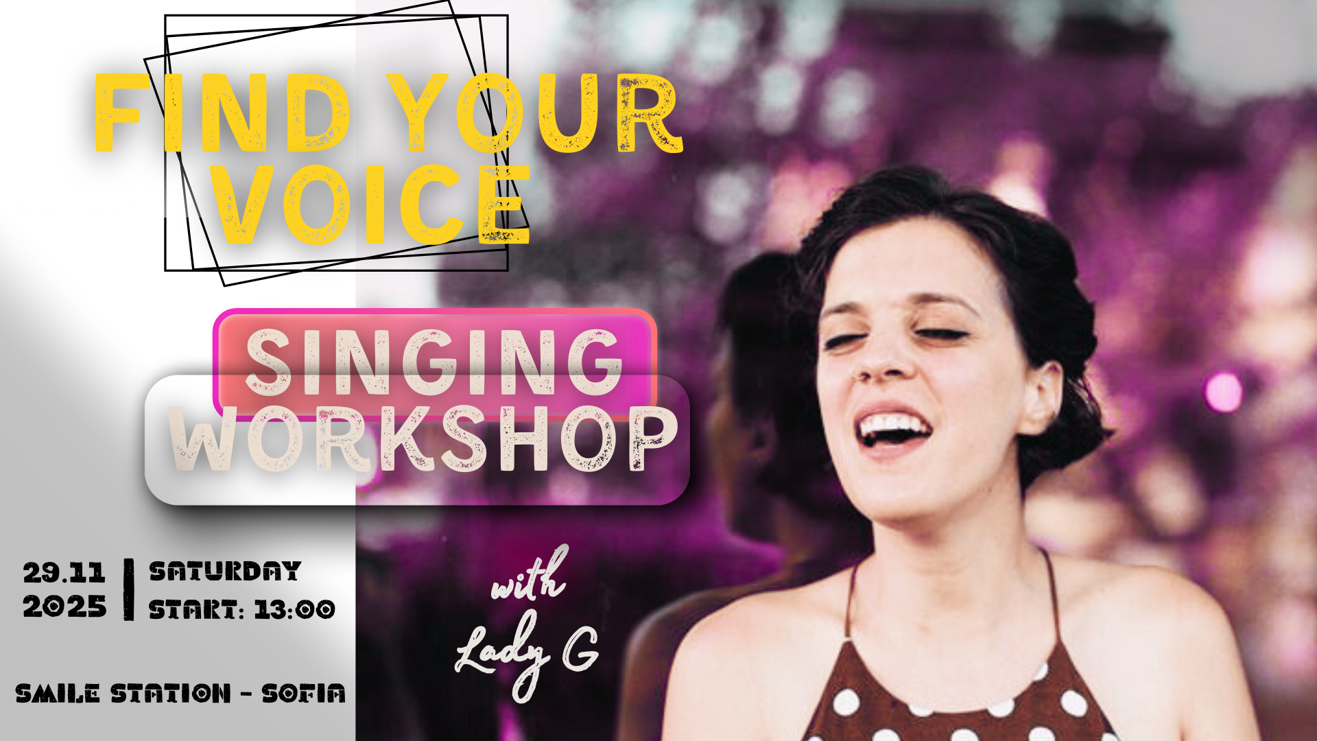 Джорджия Павлова е Ваш учител, ментор и водач в това невероятно вокално пътешествие. Тя е действащ вокален изпълнител и педагог. Повече можете да намерите тук: https://www.ladygeorgiapavlova.com/ Чрез опознаване на гласа си, ще научите как да го разбирате, къде са бариерите и как да го освободите. "Всеки ли може да се научи да пее?"- Ако обичаш да пееш и ако имаш песен в сърцето си, ако пеенето е това, което наистина те прави щастлив, тогава да, можеш да бъдеш научен да пееш, защото вярваш или не, ти вече си певец, просто ти трябва вокално обучение. Майсторският клас включва, запознаване с основни вокални техники и основи на пеенето:�Опознаване на тялото като инструмент;�Певческо дишане;�Усещане за ритъм, пулсация и темпо;�Мелодичен усет;�Определяне на диапазона на гласа;�Индивидуална работа върху инструмента;�Индивидуална работа върху песен.�Необходимо е предварително записване на тел. 0898556771 Местата са ограничени. 📅 29.11 🏫 "Smile Station" - бул. Владимир Вазов 10, Sofia, Bulgaria / Метростанция Хаджи Димитър ⏰️ Активности - 13:00 - 17:00 ч. Вход: 70 лв. (заплащане на място)